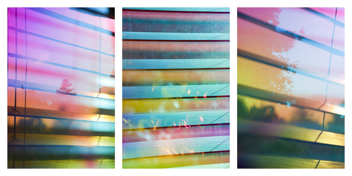 Natalie Hunter’s photographically focused artistic practice explores the sensory experiences of light, colour, and motion. Utilizing a variety of substrates such as paper and transparent film, her works have taken numerous forms from 2-dimensional prints that capture filtered light and colour, to 3-dimensional sculptural forms that transmit a perceptual interplay of light and colour into the surrounding space through the viewer’s bodily movements.