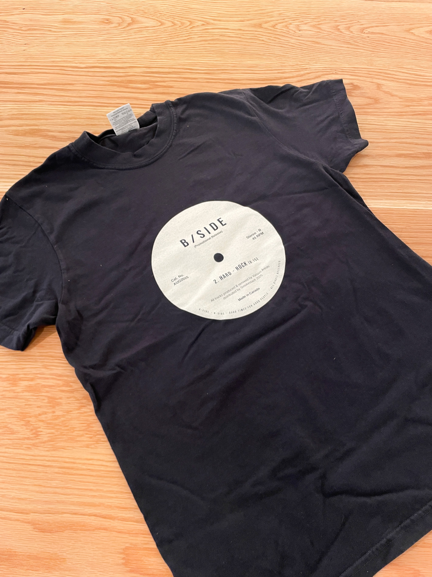 A limited-edition t-shirt created on the occasion of the “B-Side: hard rock”, record inspired community group exhibition.