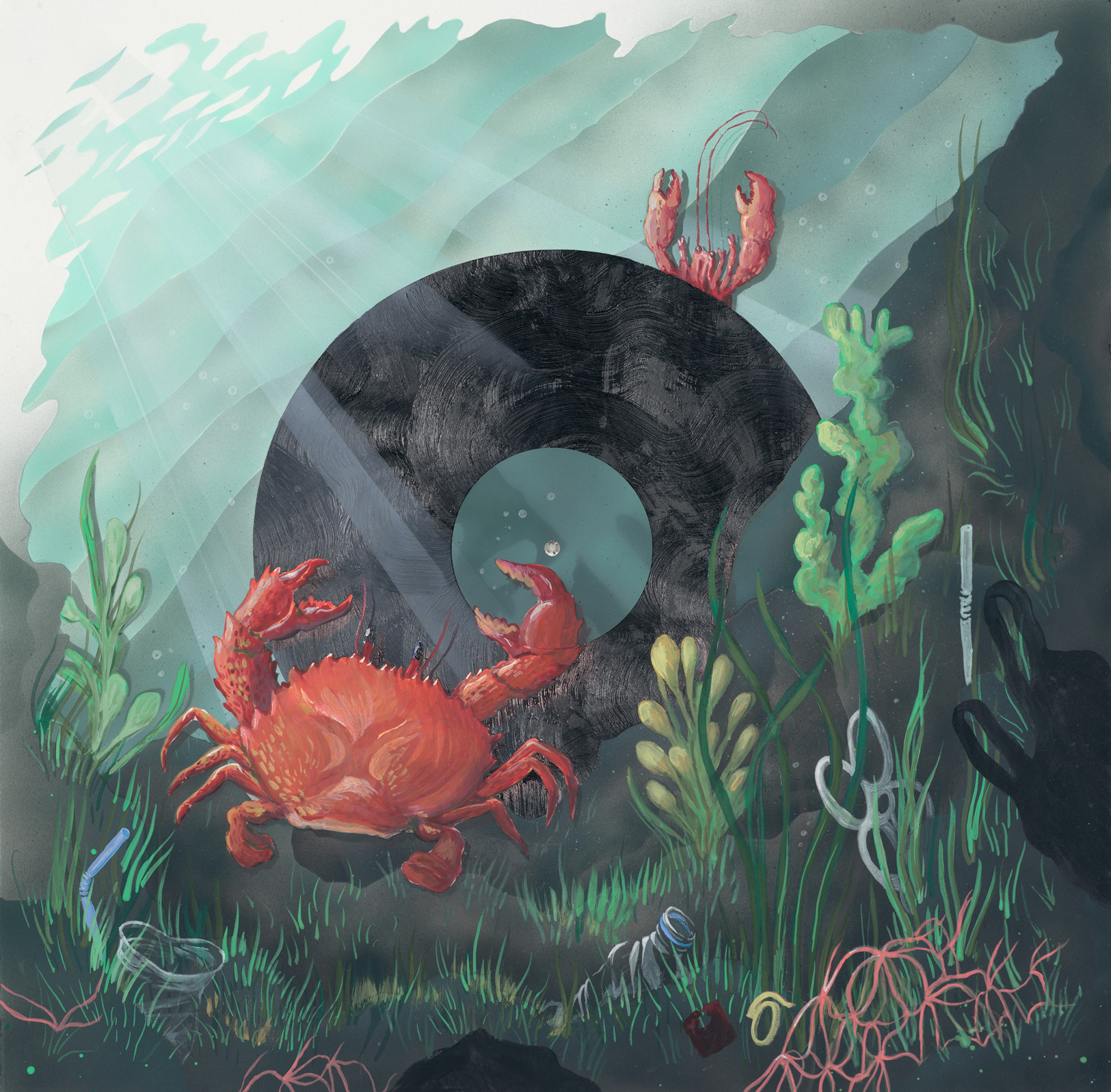 • Mixed media on paper with applied silkscreen centrepiece