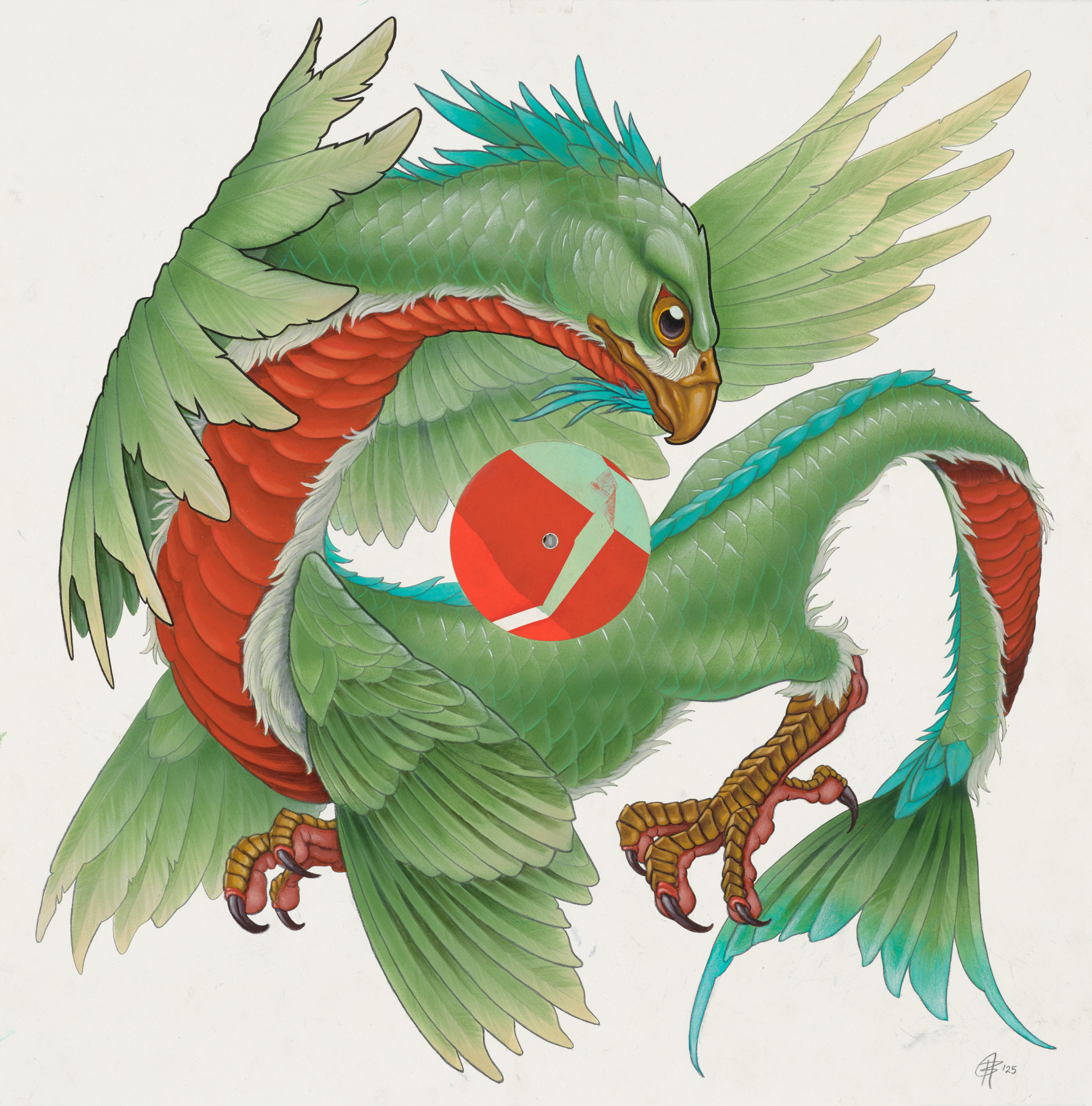 • Airbrushed acrylic, marker, pencil crayon on paper with applied silkscreen centrepiece