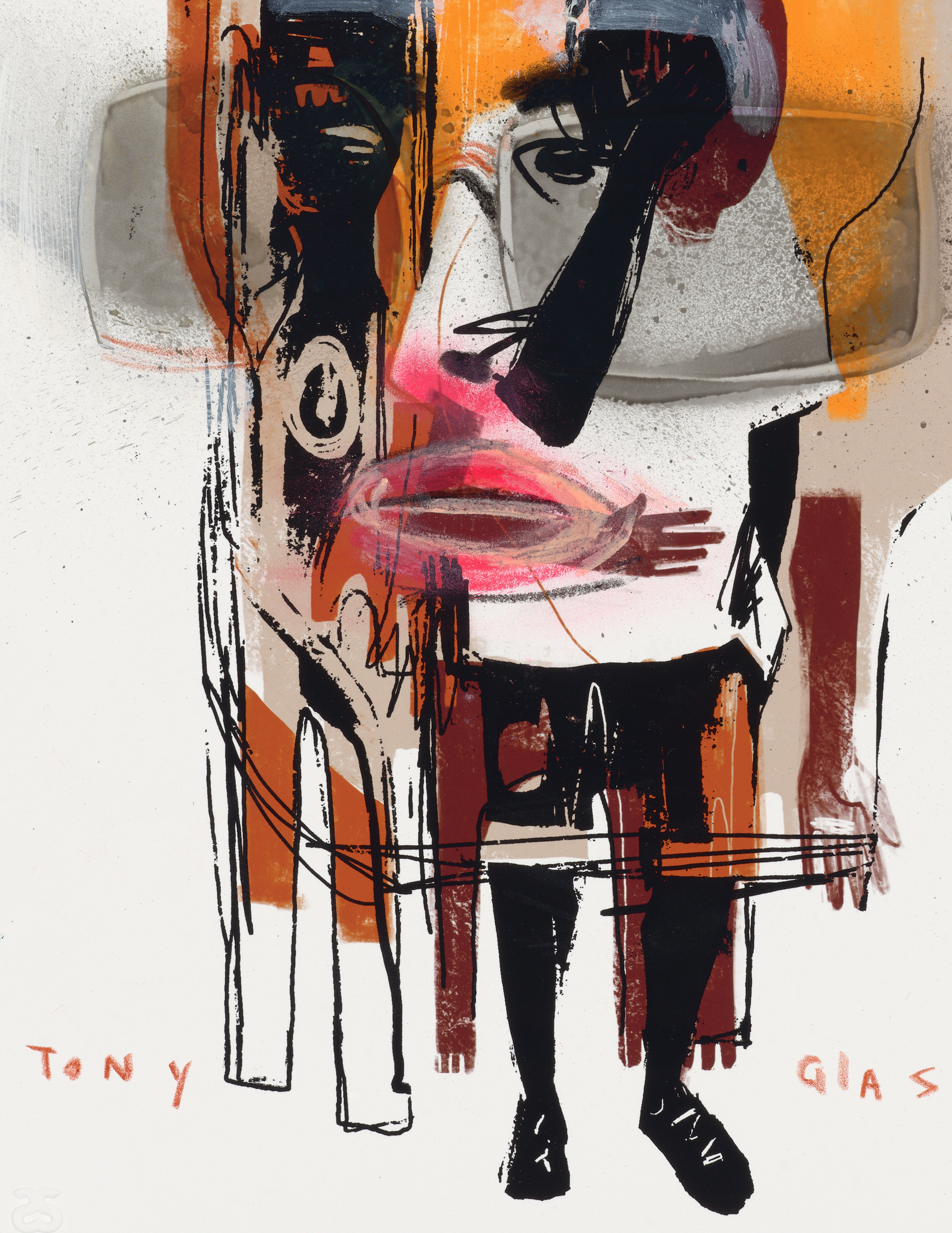 • digital/silkscreen print with spray-painted and hand-drawn embellishments