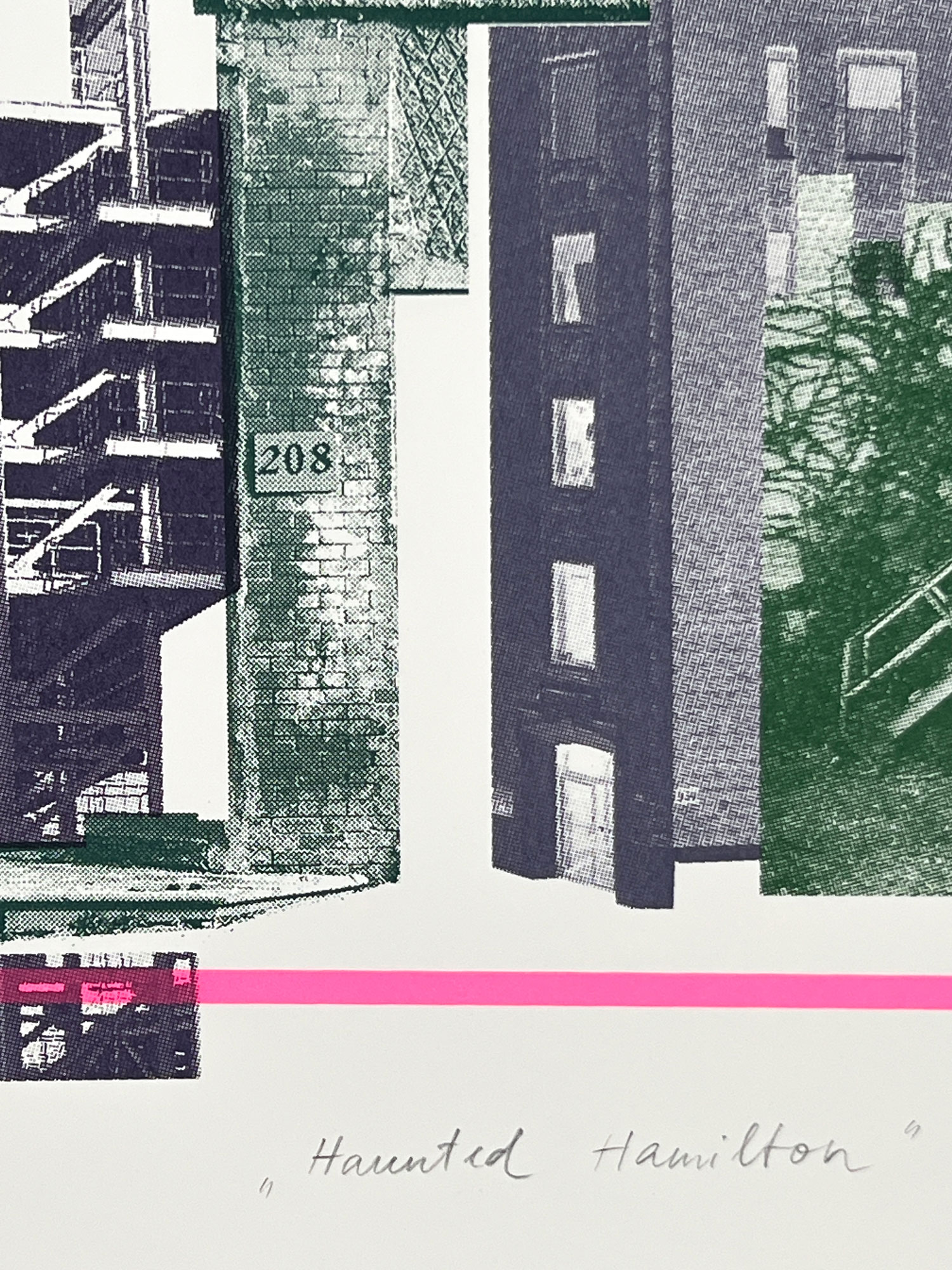 Kadri Toom arrived in Hamilton in the fall of 2025 as the Nordic Artist Exchange Resident at the Cotton Factory. With a focus on architecture, Toom explored the local urban environment, capturing neoclassical buildings and new developments with her camera on foot. An expressed interest in working with Smokestack Studios during her residency culminated in creation of new collaborative, silkscreen print with Laine Groeneweg in the Analog Studio. Haunted Hamilton reassembles segments of her architectural, visual records and experiences in a newly built construction of her own imaginings.