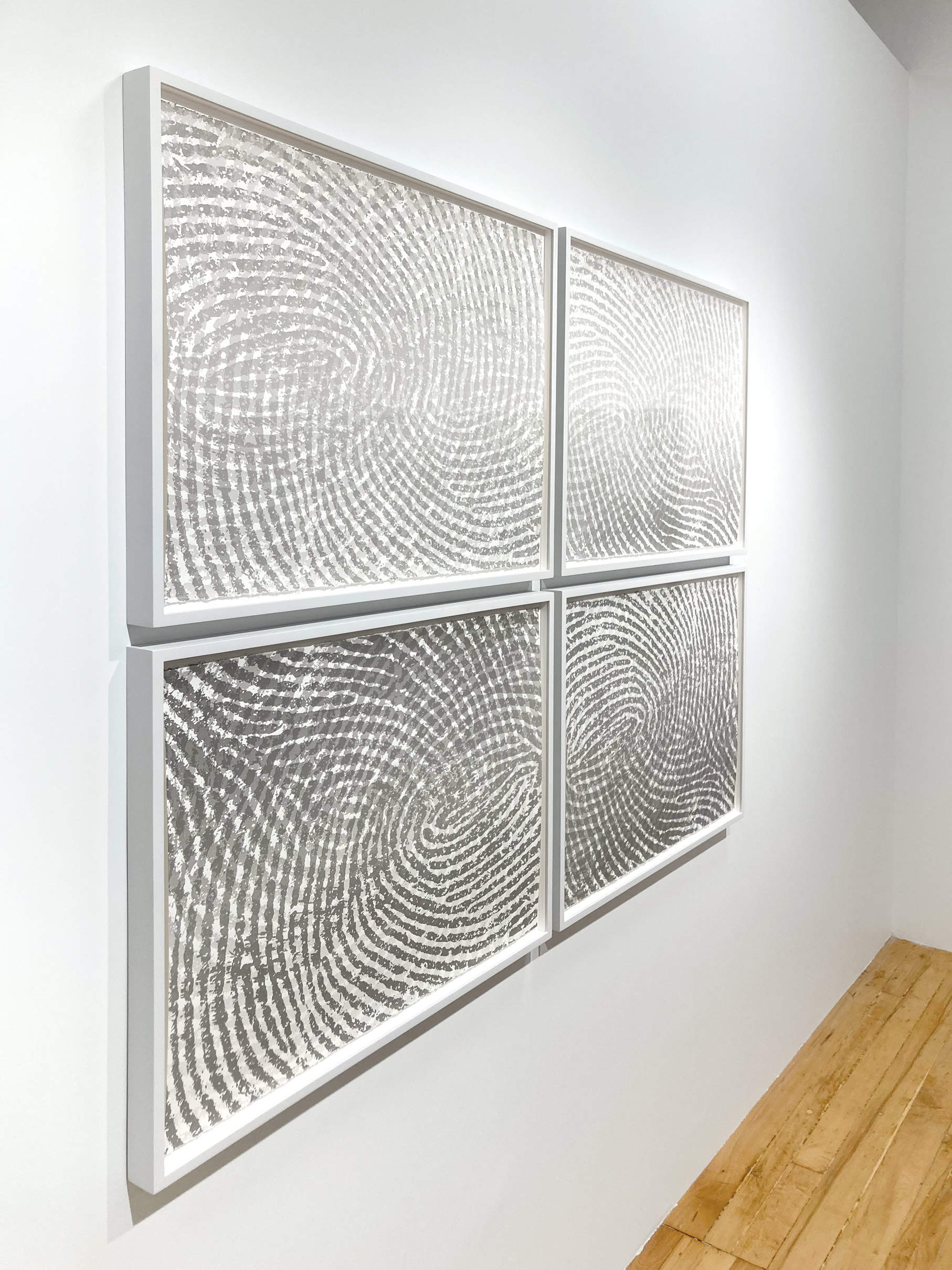 Kristiina Lahde and Adam David Brown produced a new series of work titled “Under the Influence” as 2022 Smokestack Analog Print Residency co-participants. Representing their first professional collaborative endeavour, Lahde and Brown used their own fingerprints as the foundation of imagery investigations that centred around the notion of touch. Working with Smokestack’s analog printmaker, Laine Groeneweg, their experimentations with the layering, scale and patterning of their fingerprints created rhythmic networks and cross-hatched connections.