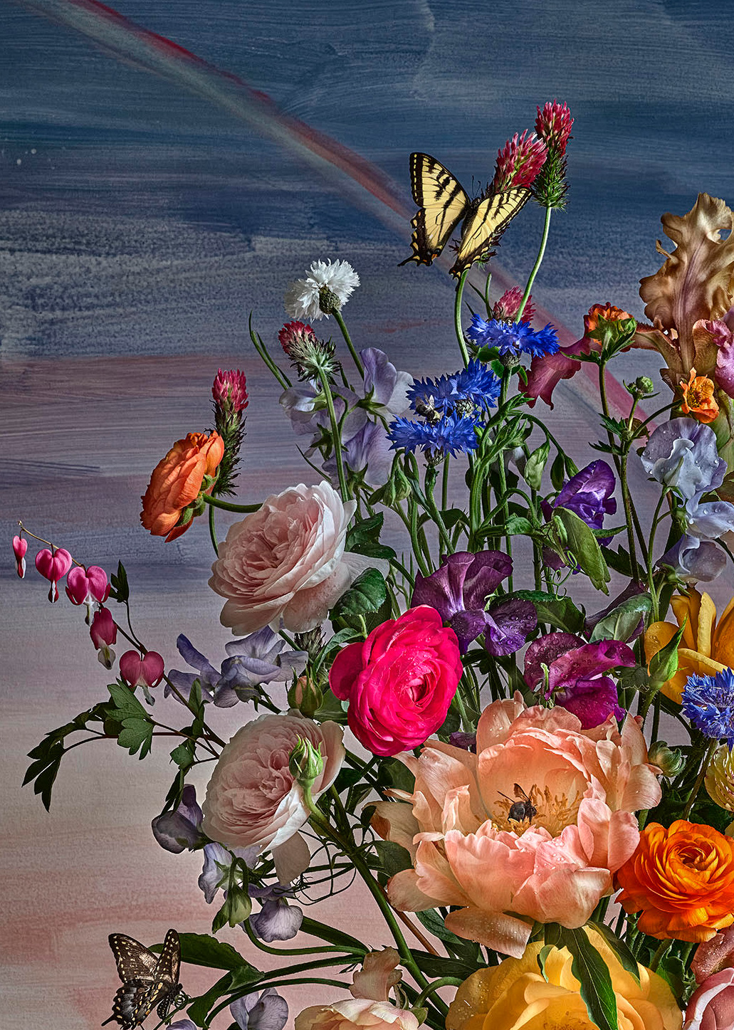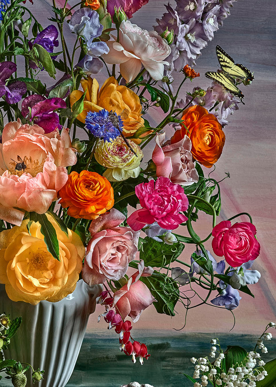 Kristin Sjaarda investigates the intricacies of the ecosystem through photography. Influenced by the style and content of still-life paintings from the 17th century Dutch Golden Age, Sjaarda’s photographic adaptations present larger-than-life sized botanical arrangements that boast high-contrast lighting and amplified depth of visual clarity.