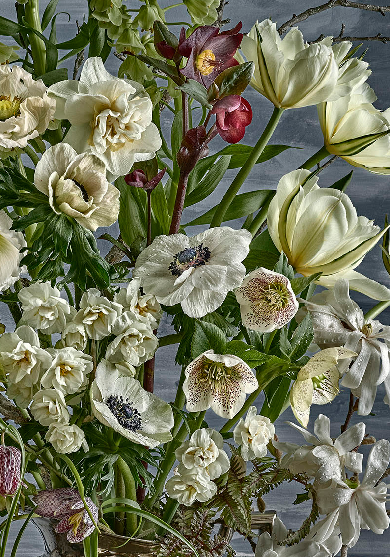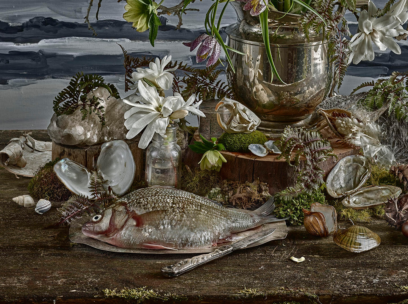Kristin Sjaarda investigates the intricacies of the ecosystem through photography. Influenced by the style and content of still-life paintings from the 17th century Dutch Golden Age, Sjaarda’s photographic adaptations present larger-than-life sized botanical arrangements that boast high-contrast lighting and amplified depth of visual clarity.