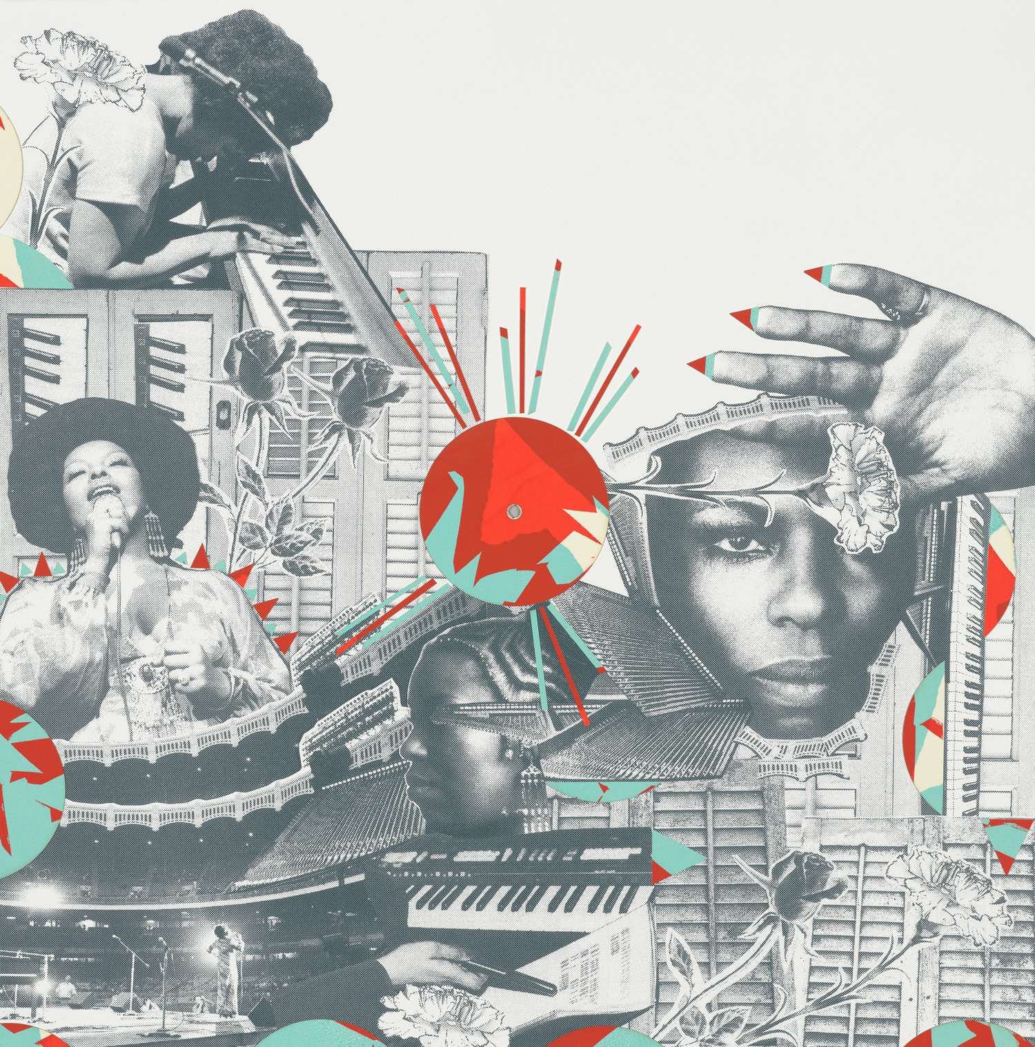 • Screenprint with hand-embelishment and collage with applied silkscreen centrepiece