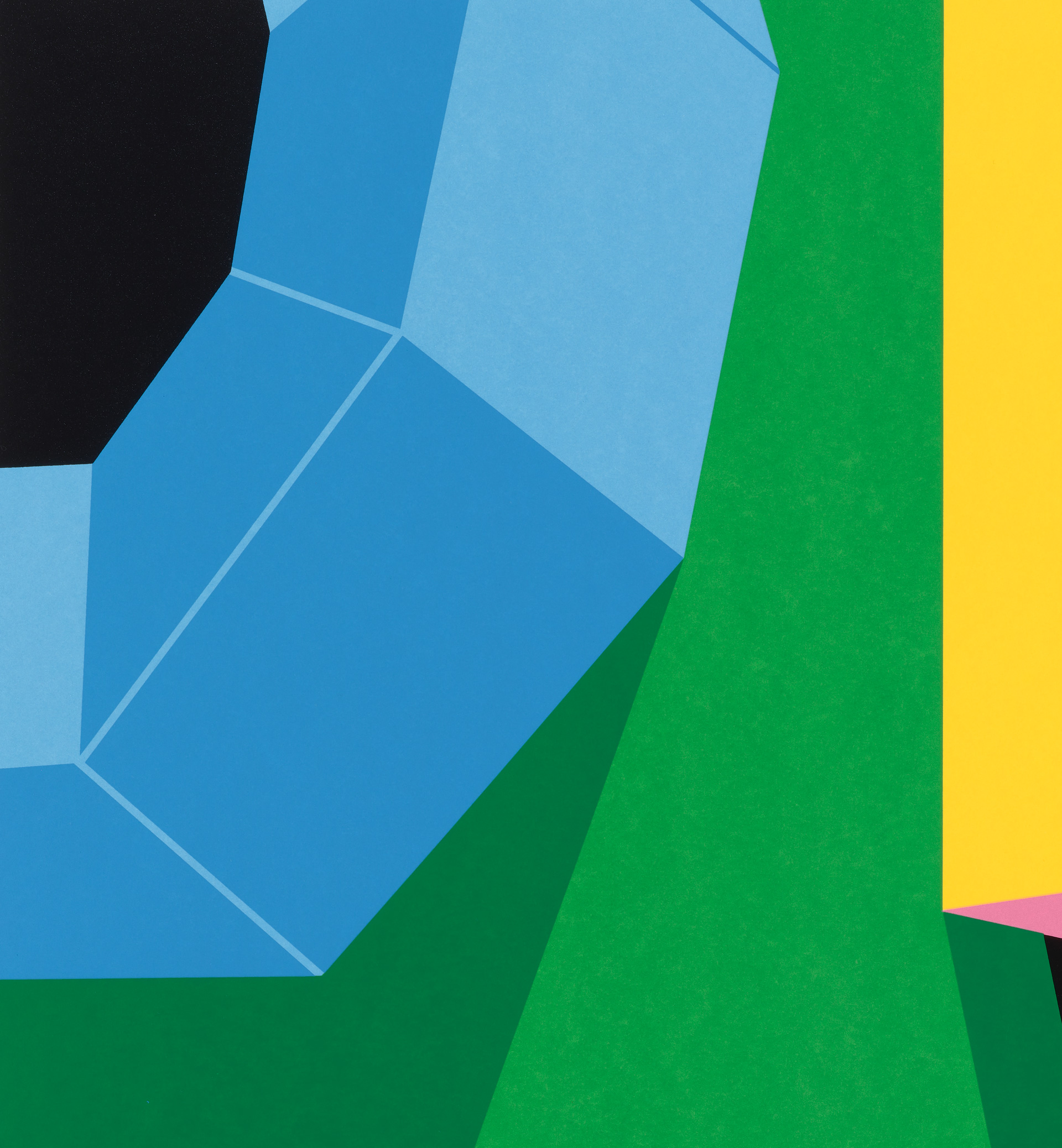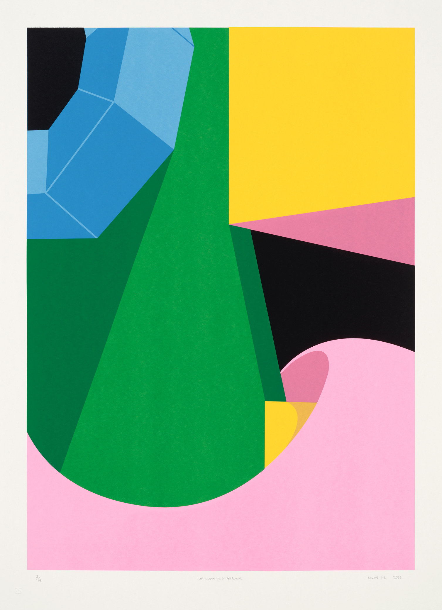 For those who may not be familiar with his persona, the work presents an abstracted composition of bright colour and bold, geometric design. For those who are, one might recognize the unmistakably green colouration; a polygon of brilliant blue eyes; an improbably dexterous tongue; a feeling of being absorbed and overwhelmed by atypical joy.