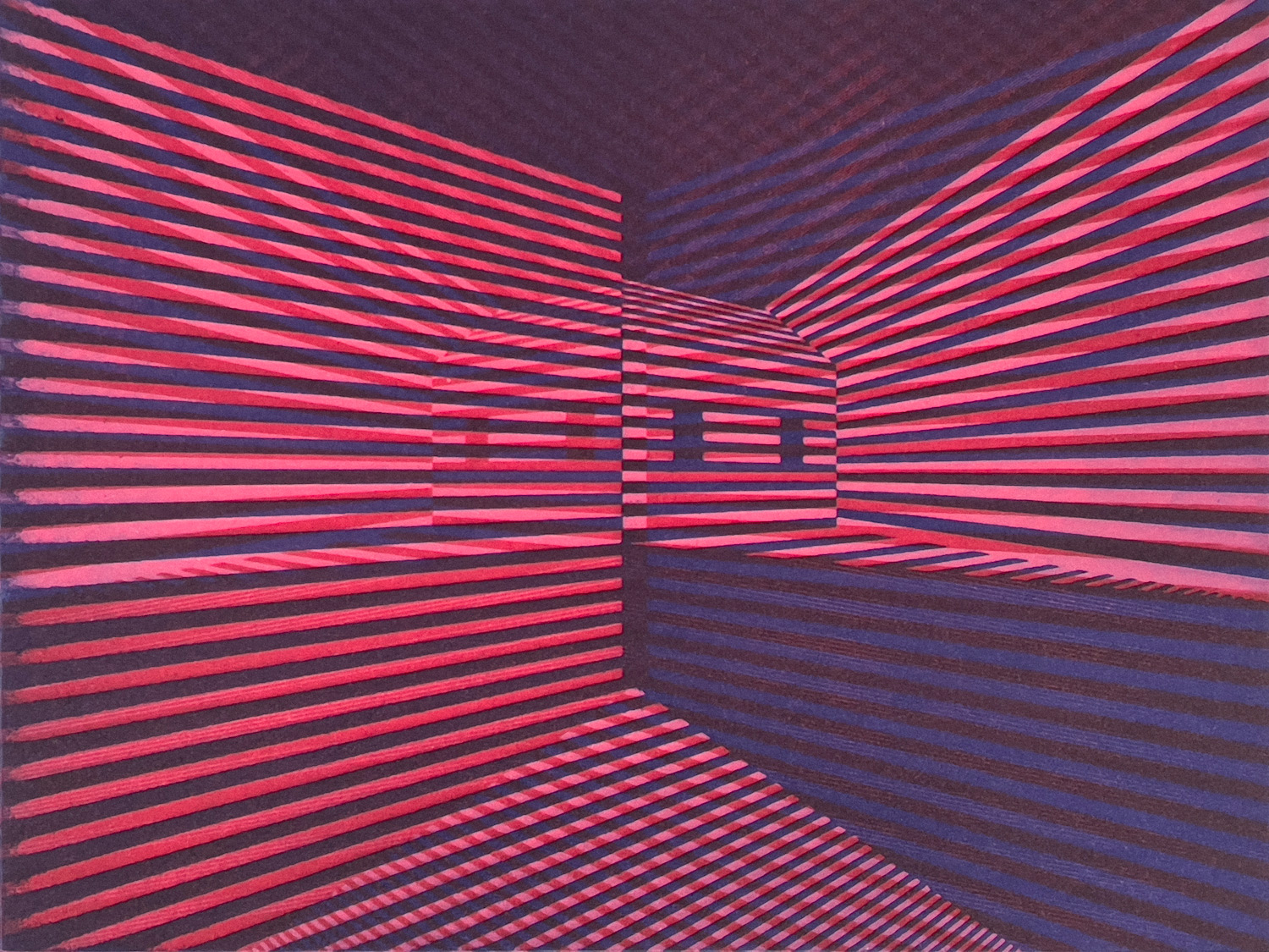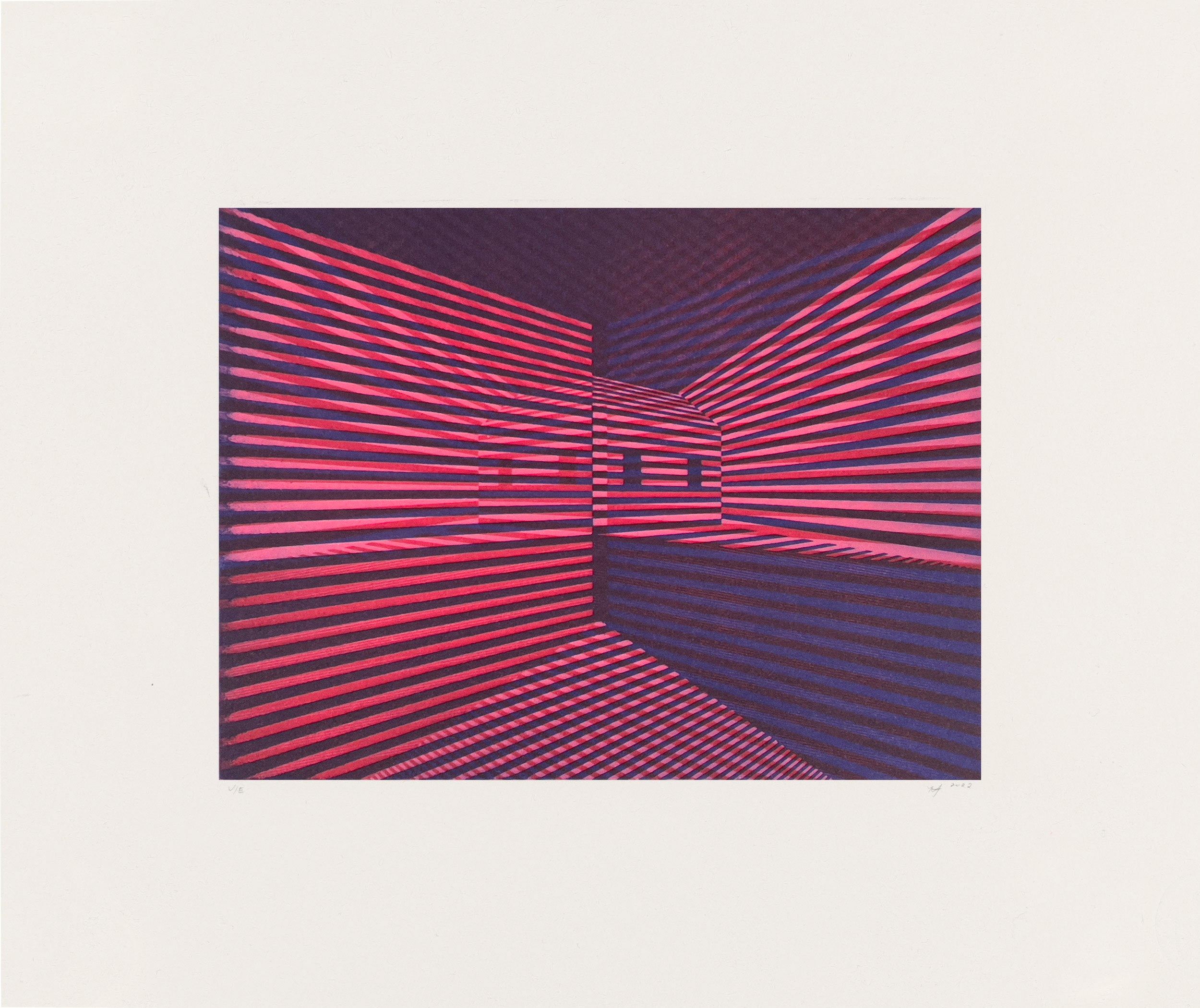 As a participant of Smokestack’s 2022 Analog Print Residency, Meaghan Hyckie utilized her time in residence as opportunity to undertake an intensive, introductory focus on intaglio printmaking. The variable aquatint etchings collaboratively produced with Smokestack’s Master Printmaker, Laine Groeneweg, present her dedicated experimentation with color and tonal density shifting – imagery possibilities unique to the aquatint process.