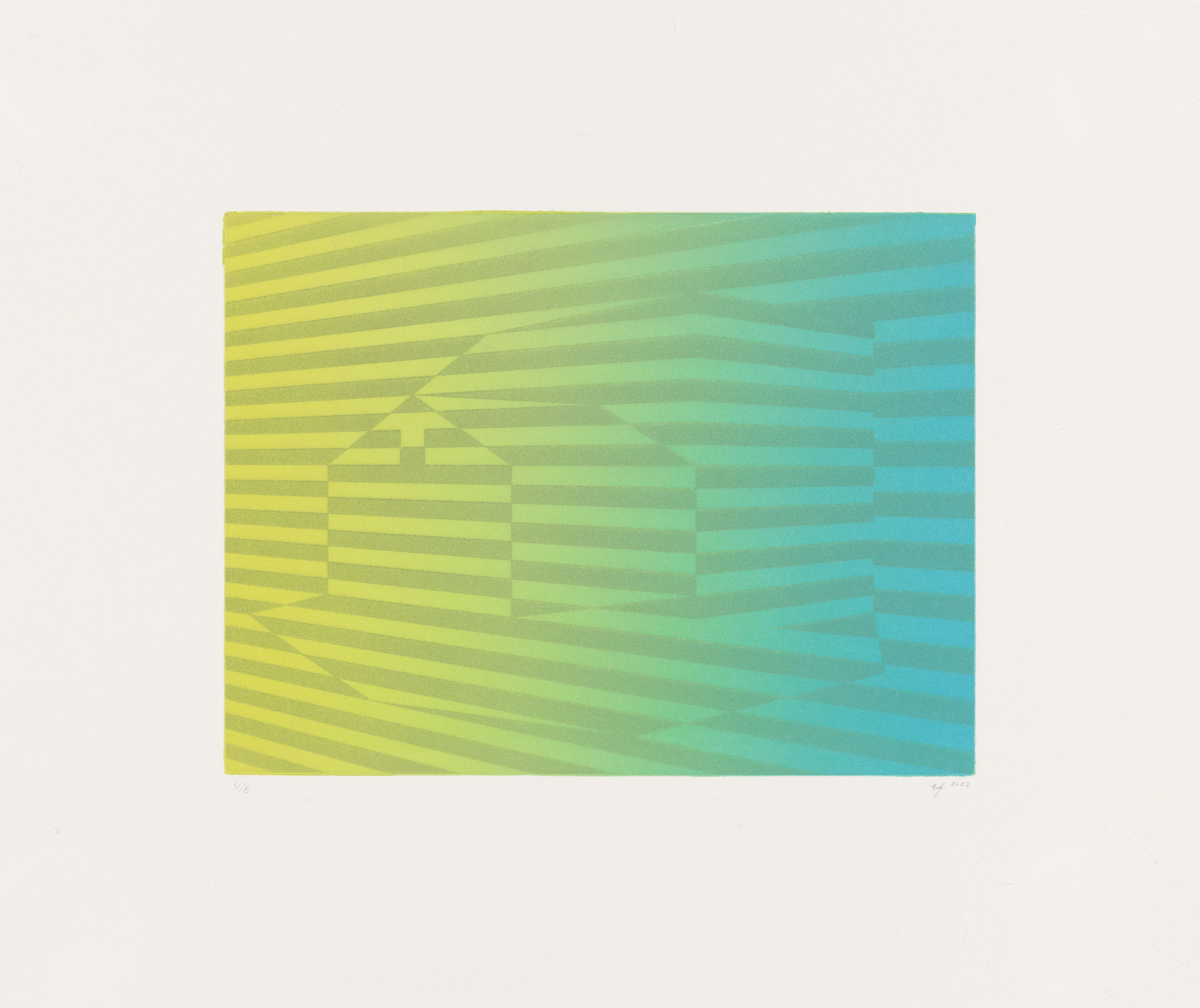 As a participant of Smokestack’s 2022 Analog Print Residency, Meaghan Hyckie utilized her time in residence as opportunity to undertake an intensive, introductory focus on intaglio printmaking. The variable aquatint etchings collaboratively produced with Smokestack’s analog printmaker, Laine Groeneweg, exemplify her dedicated experimentation with color and tonal density shifting. Each print of the Parcel, Peak and Beam variable editions resulted in a series of unique images that demonstrate the imagery possibilities unique to the aquatint process.