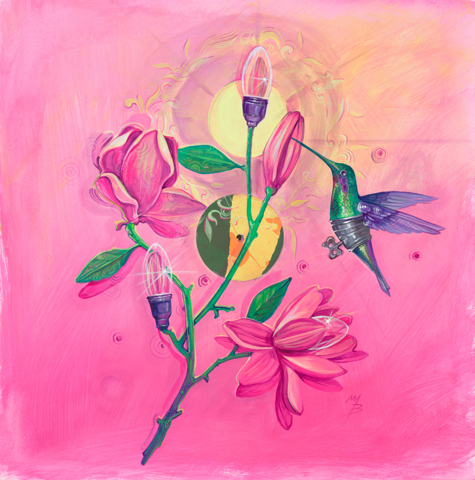 • Painting with applied silkscreen centrepiece