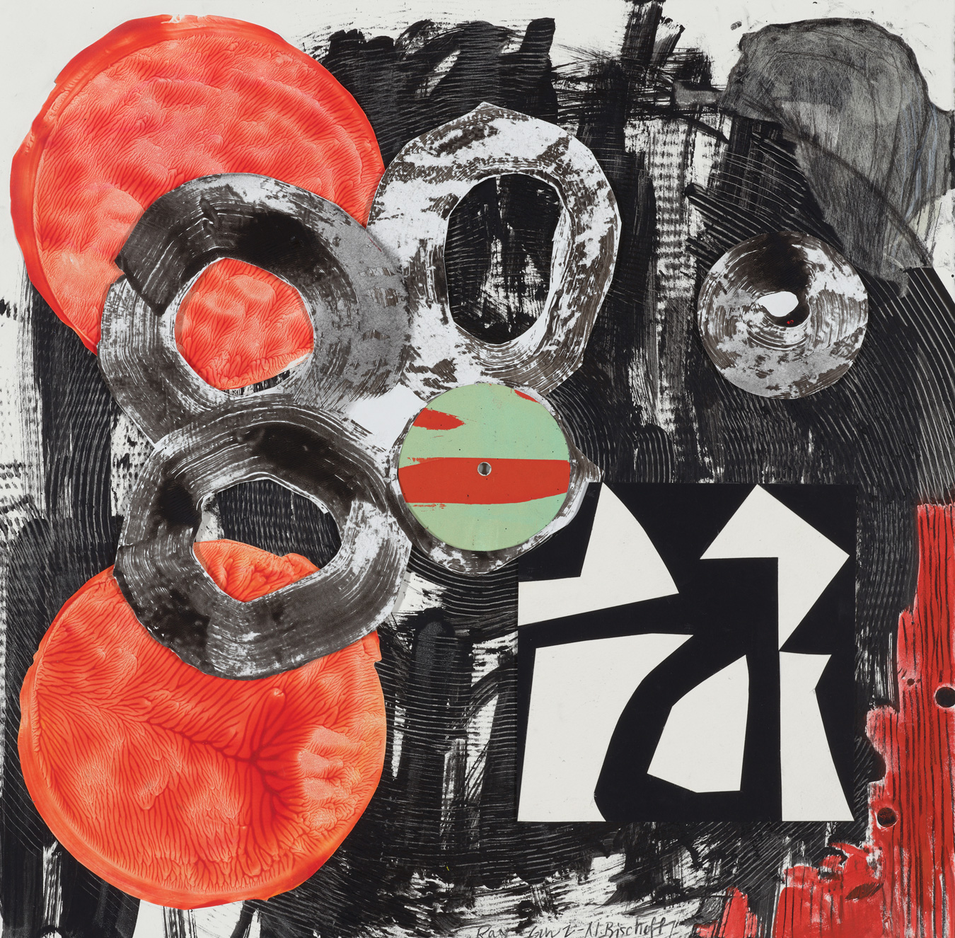 • Mixed media on paper with applied silkscreen centrepiece