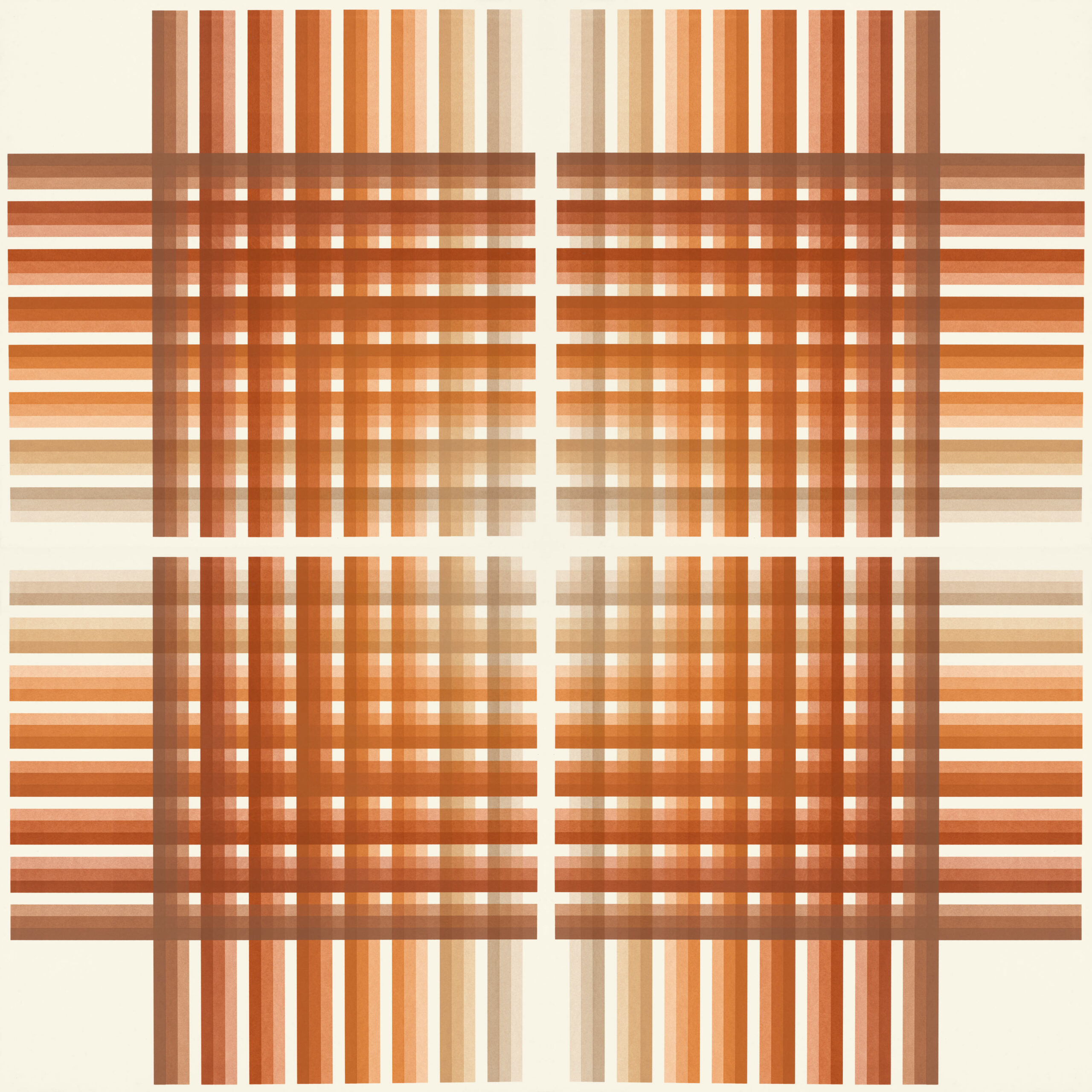 Old Hamilton Weave and New Hamilton Weave are two expansive works printed with these locally sourced brick-dust inks. Old Hamilton Weave – displaying more clay-saturated tones of deeper colouration – was printed with brick dust prepared from older bricks evincing a higher concentration of clay. By contrast, the lighter ink tonalities used for the printing of New Hamilton Weave were created from bricks likely fabricated more recently.
