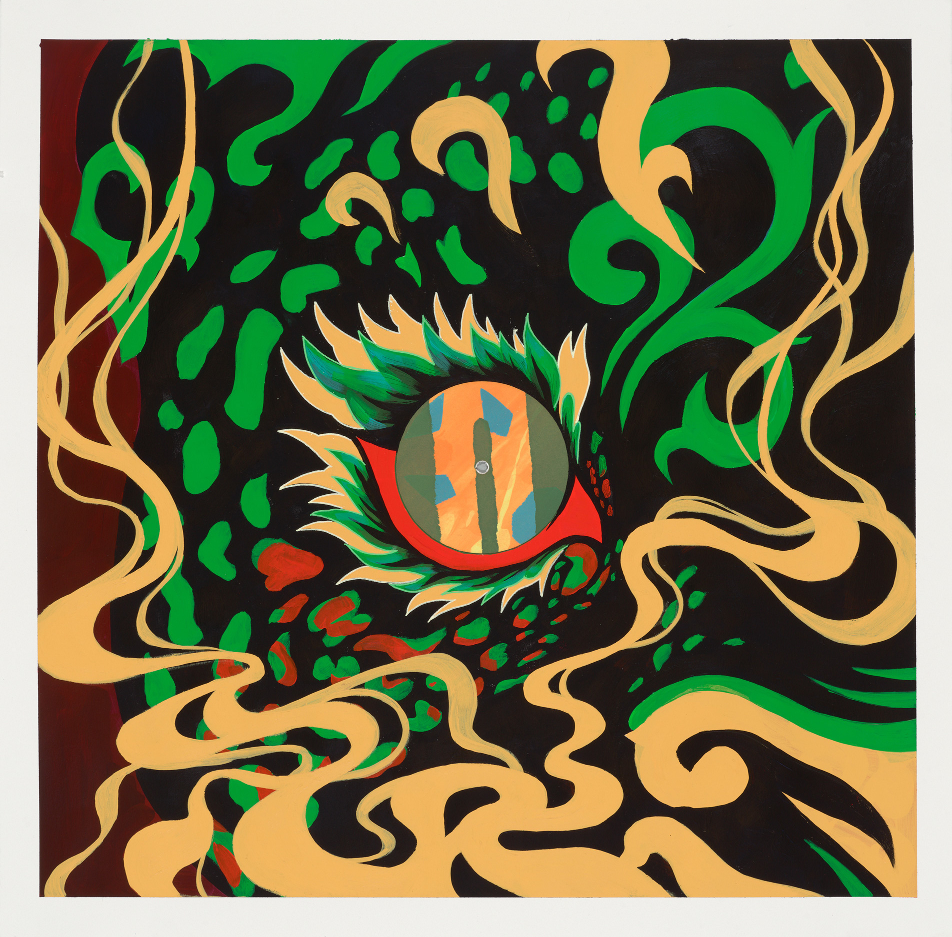 • Acrylic paint on paper with applied silkscreen centrepiece