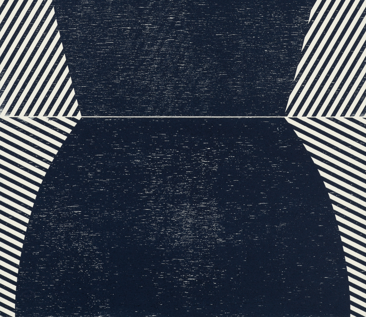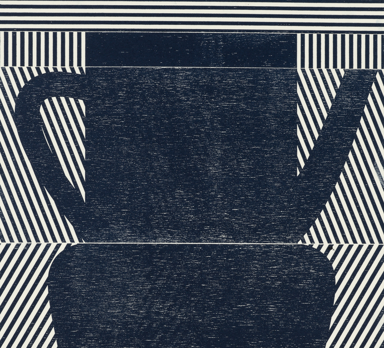 Smith’s 2025 Smokestack Analog Print Residency project, Imagined Archives, represented her introduction to relief printmaking as a new method of approach within her practice. For the making of this project, Smith created a vocabulary of graphic shapes and linear patterning fabricated into modular wood-cut pieces. Through collaborative exploration by Smith and Smokestack’s analog printmaker, Laine Groeneweg, these pieces were then rearranged into a multitude of blocked compositions to ink and pull through the press. Suggestive of a collection of vessels – or perhaps abstracted figures – each print demonstrates a unique intersection of spatial relationships, tonal densities, and playful experimentations.