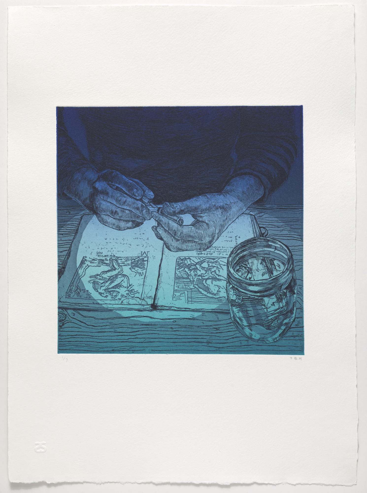 - etching with hard ground, aquatint and burnishing