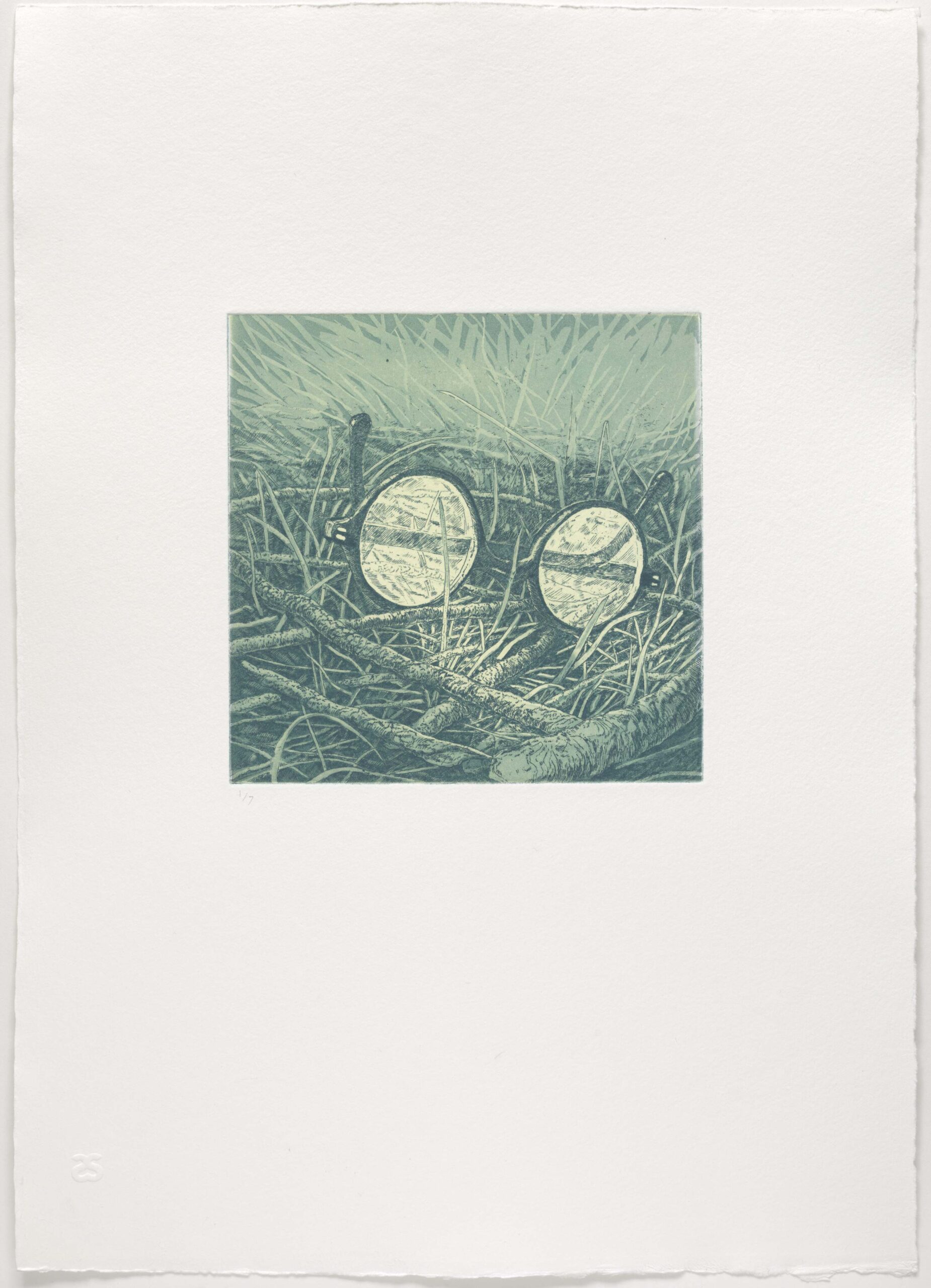 • etching with hard ground, aquatint and burnishing