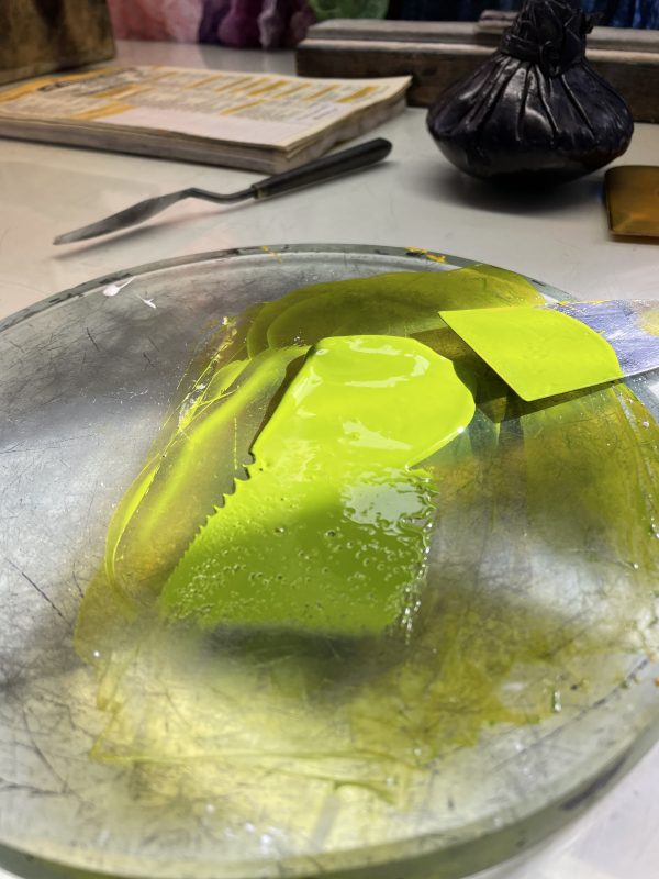 Meaghan wanted to take the opportunity during this residency to experiment with colour and see what kinds of interactions we could get through the mixing of lush oil-based inks.
